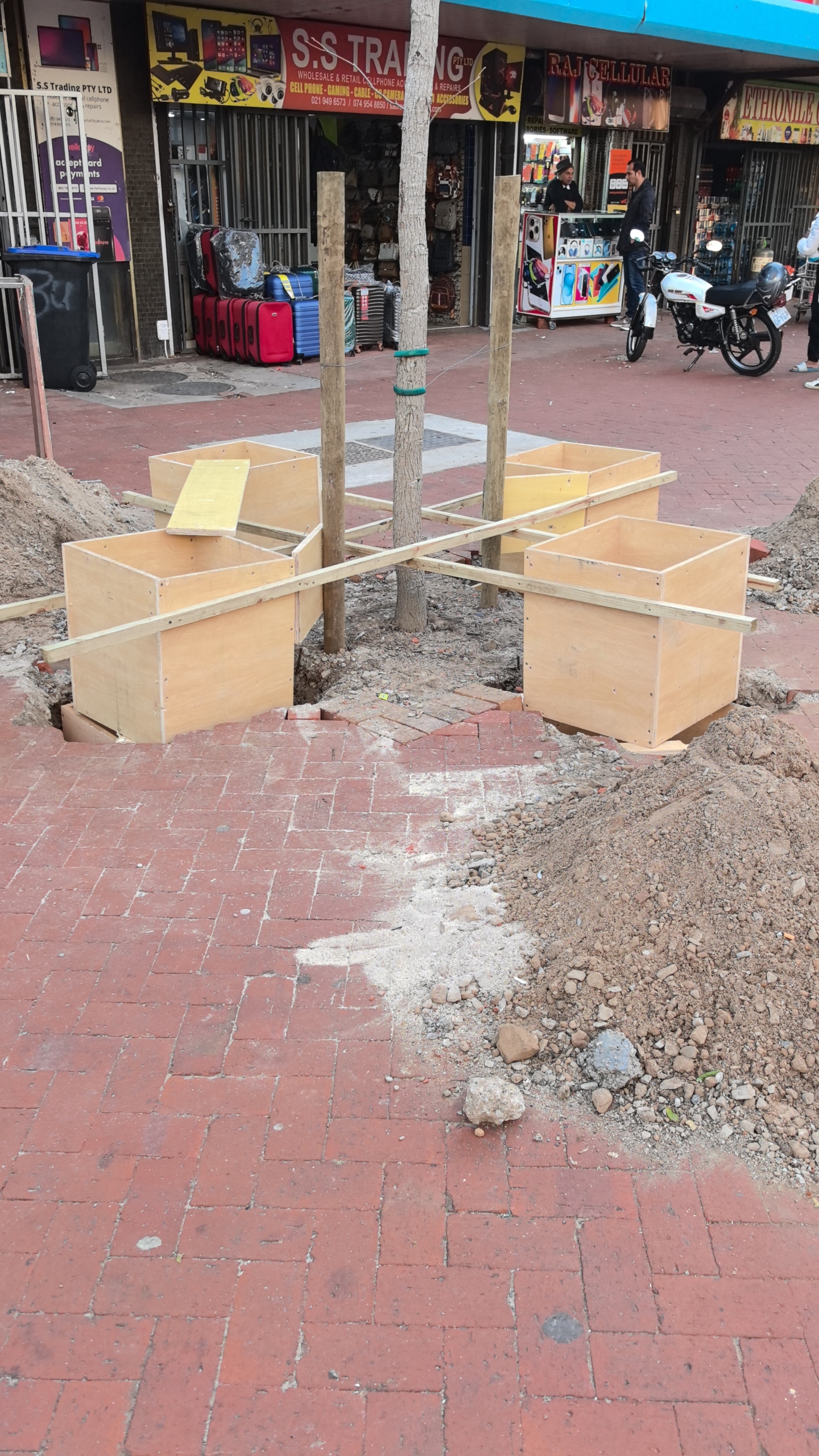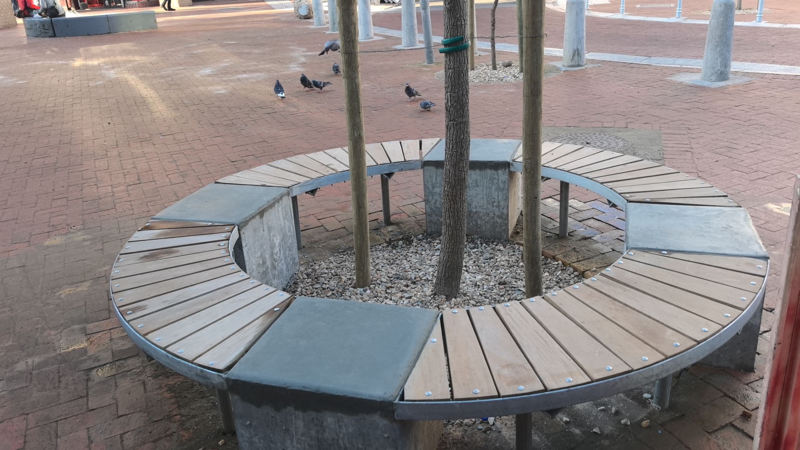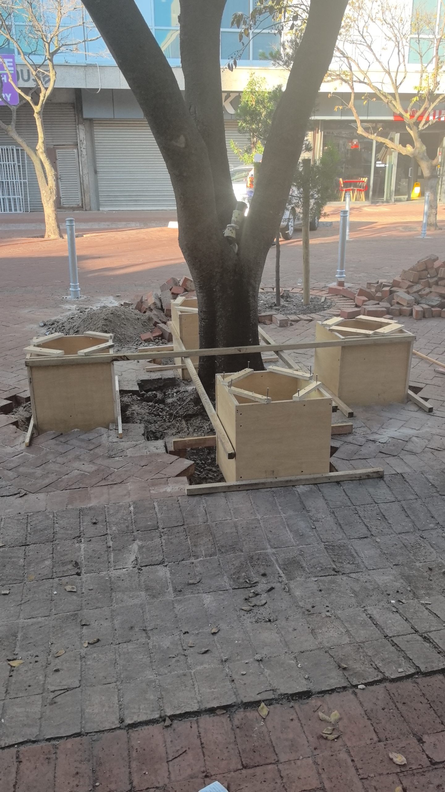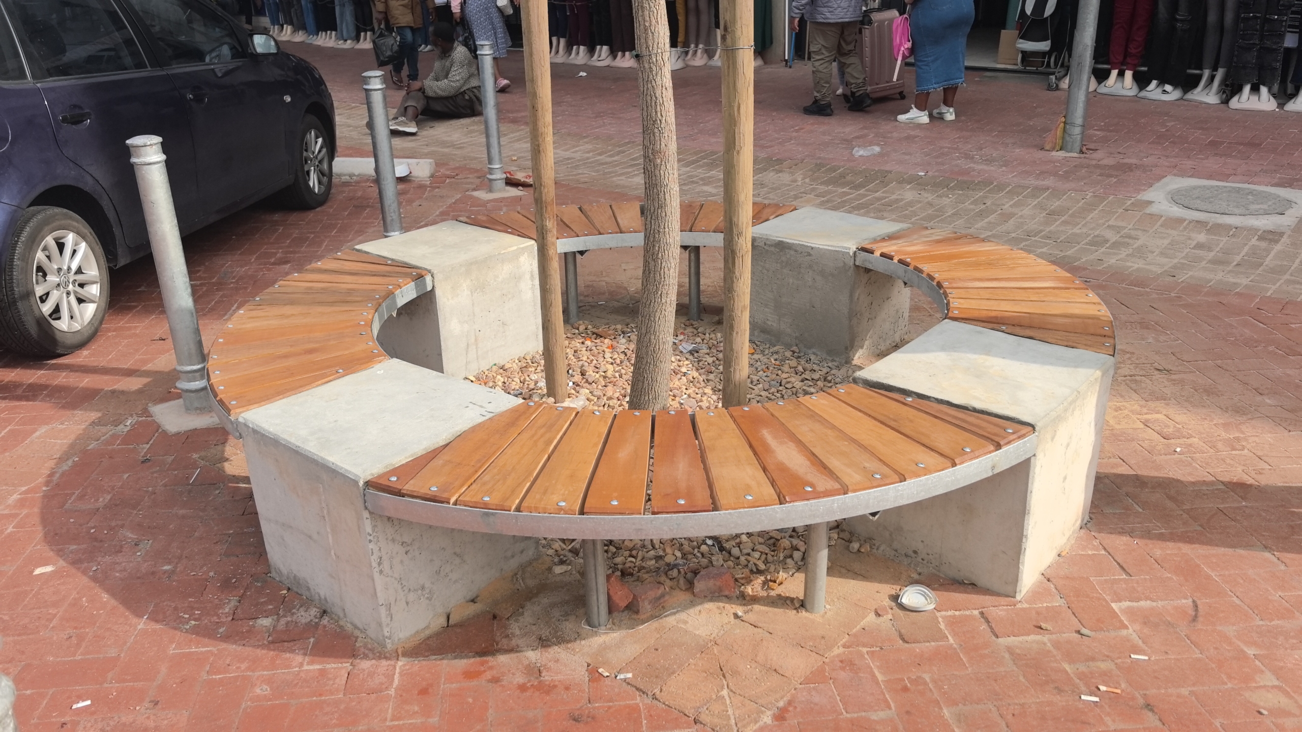 This public seating project on Kruskal Avenue in Bellville was designed to provide a durable, low-maintenance solution for a high-traffic urban environment. The installation combined robust structural elements with natural timber finishes to create functional seating that complements the surrounding streetscape.